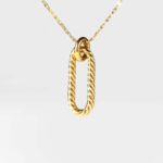 آویز طلای بیضی طنابی از طلای زرد ۱۸ عیار ساخته شده و با طراحی مینیمال و مدرن خود جلوهای خاص به گردن میدهد.